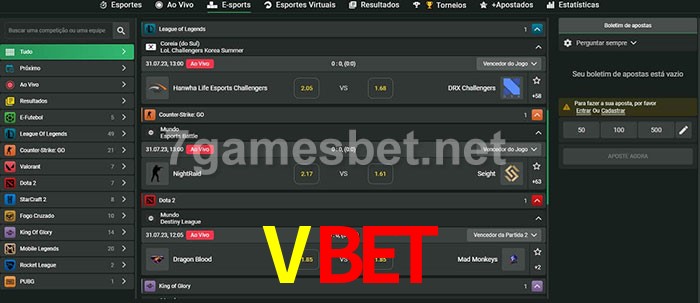 A aposta Vbet oferece aos jogadores a experiência mais conveniente de apostas em eSports!